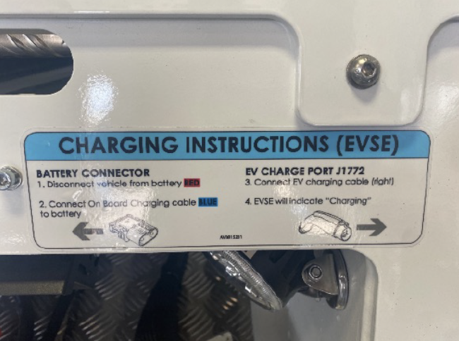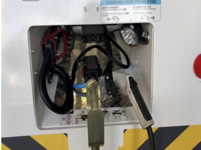 Working together with our other business partner, we installed an Averest-Flux Power 80V Lithium-Ion dual pack battery providing 420AH with a new 6.6kW onboard charger. Along with modifying the bag tractors’ charge port to not only accept the standard smart charging device but now the tractor can be charged with a power supply utilizing the standard J1772 charge port. As we understand it, we have modified the first of its kind within this specific application.